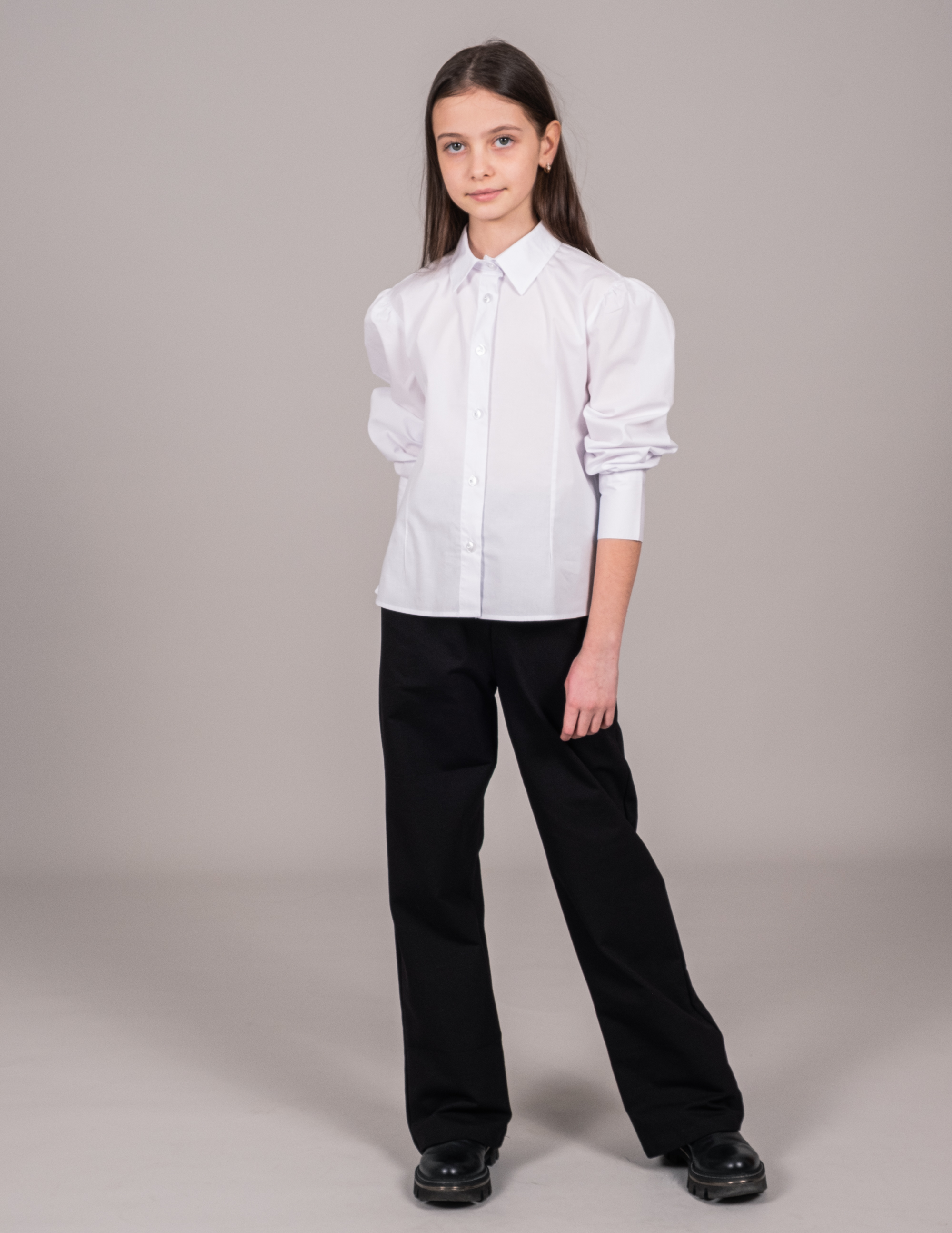 Белая блузка-рубашка с отложным воротничком - это классический вариант для девичьей школьной формы и торжественных мероприятий. Длинные рукава на манжетах с пуговицами. Воротник отложной. Блузка изготовлена из тонкого полотна на хлопковой основе, очень приятного телу. Она хорошо держит форму при активной носке и не теряет ее после многократных стирок. В такой милой блузке вашему ребенку будет очень комфортно на уроках в школе и торжественных мероприятиях.
