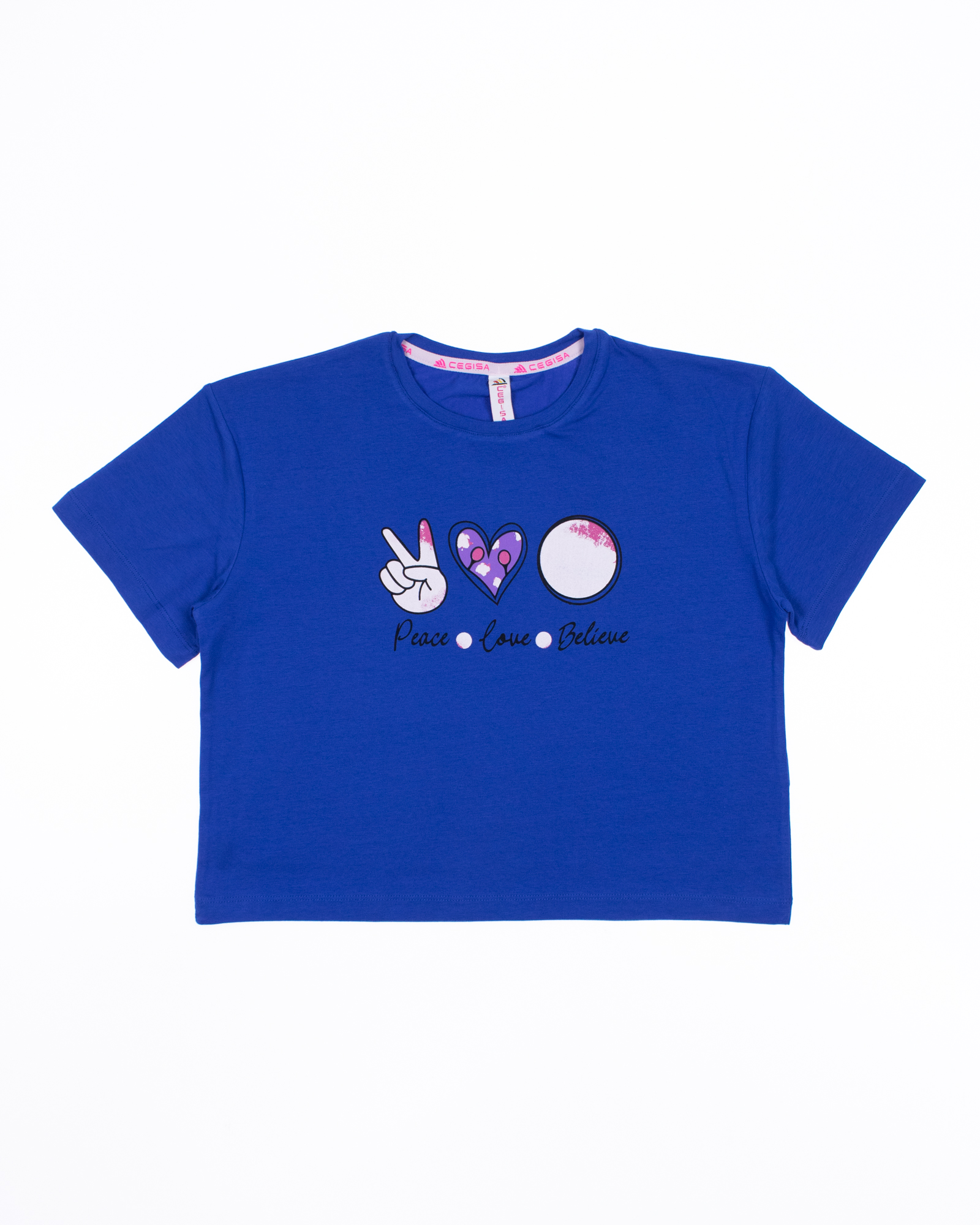 Футболка Cegisa для девочки оптом, выполнена из высококачественного материала кулирка с добавлением эластана. Приятная на ощупь ткань футболки с принтом не потеряет свой первоначальный вид после множества стирок. Футболка на девочку хорошо пропускает воздух и не закатывается. Модель укороченная не сковывает движения и комфортна в носке. Стильная и милая дизайнерская печать прекрасно дополнит образ. Футболка отлично подходит для повседневной носки, физкультуры или дома.