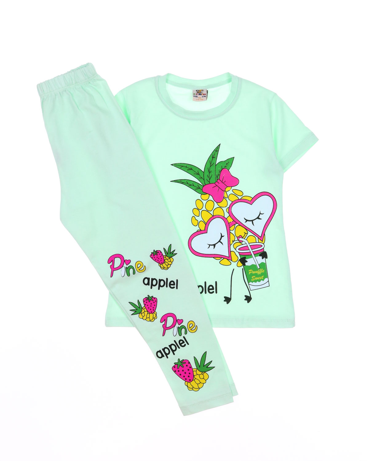 Практичный костюм для девочки оптом состоит из футболки и лосин. Горловина футболки обработана эластичной бейкой. Лосины в поясе на резинке. Костюм изготовлен из хлопкового полотна кулирка - нежного и мягкого, гипоаллергенного и легкого в уходе. Модель прекрасно подойдет для повседневной носки на улице или дома, для детского сада, а так же для активного отдыха и занятий спортом.