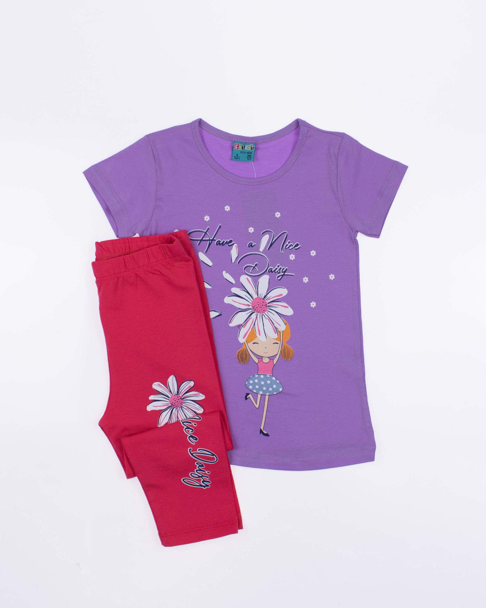 Детский костюм торговой марки CITCIT оптом - это отличный выбор для маленькой модницы! Произведенный в Турции из высококачественного трикотажа кулирка, этот костюм обеспечивает комфорт и удобство на целый день. Свободный и удлиненный  крой  делают эту футболку стильной и современной.  А принт на передней части футболки придает ей яркость и оригинальность. Этот костюм подойдет как для повседневной носки, так и для активного отдыха на свежем воздухе. А оптовая цена делает его отличным выбором для магазинов и интернет-магазинов детской одежды. Порадуйте своих малышей качественной и стильной одеждой от CITCIT!