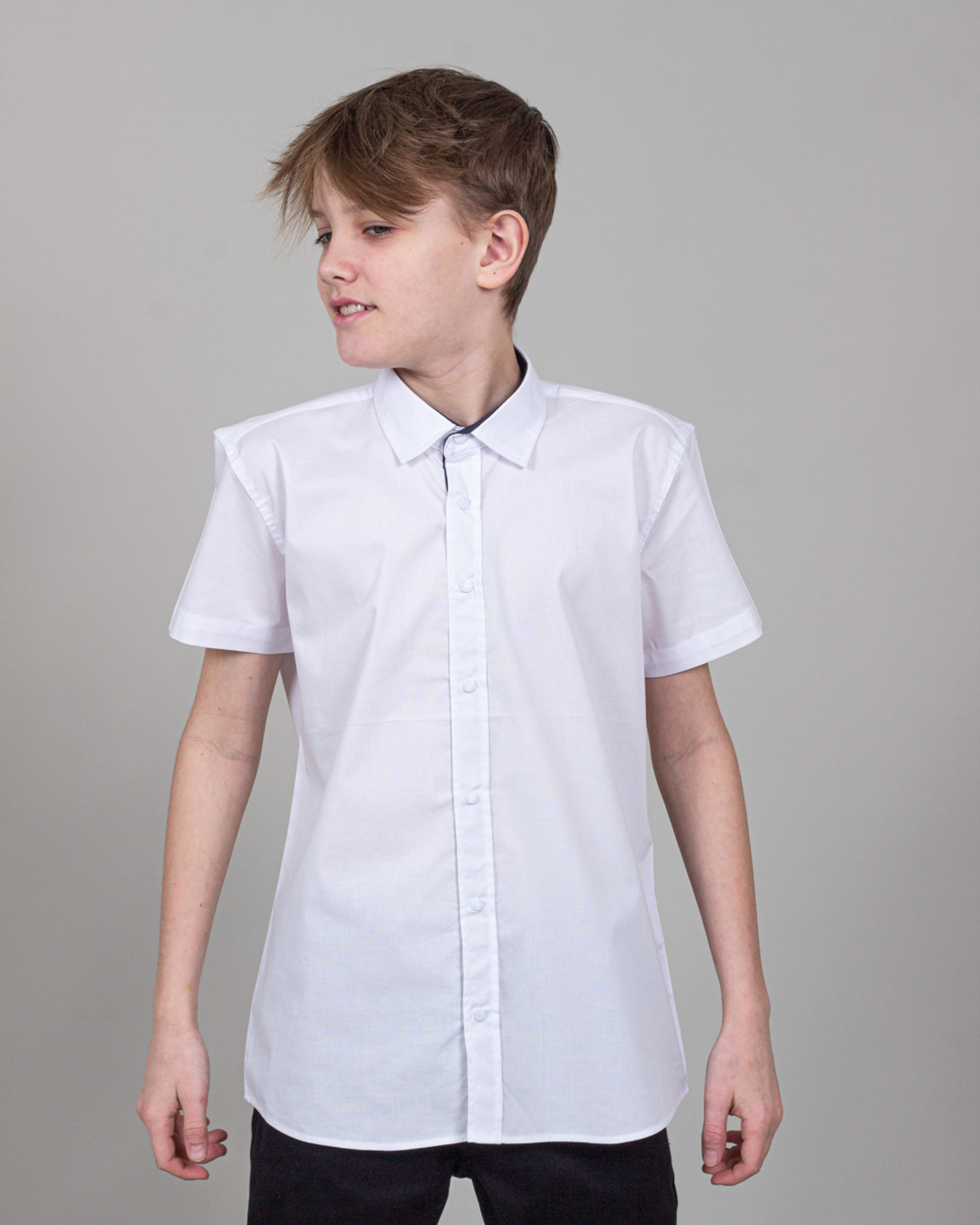 Рубашка Cegisa для мальчика оптом. Модель приталенного кроя с короткими рукавами, классическим отложным воротничком, застегивается на кнопки.