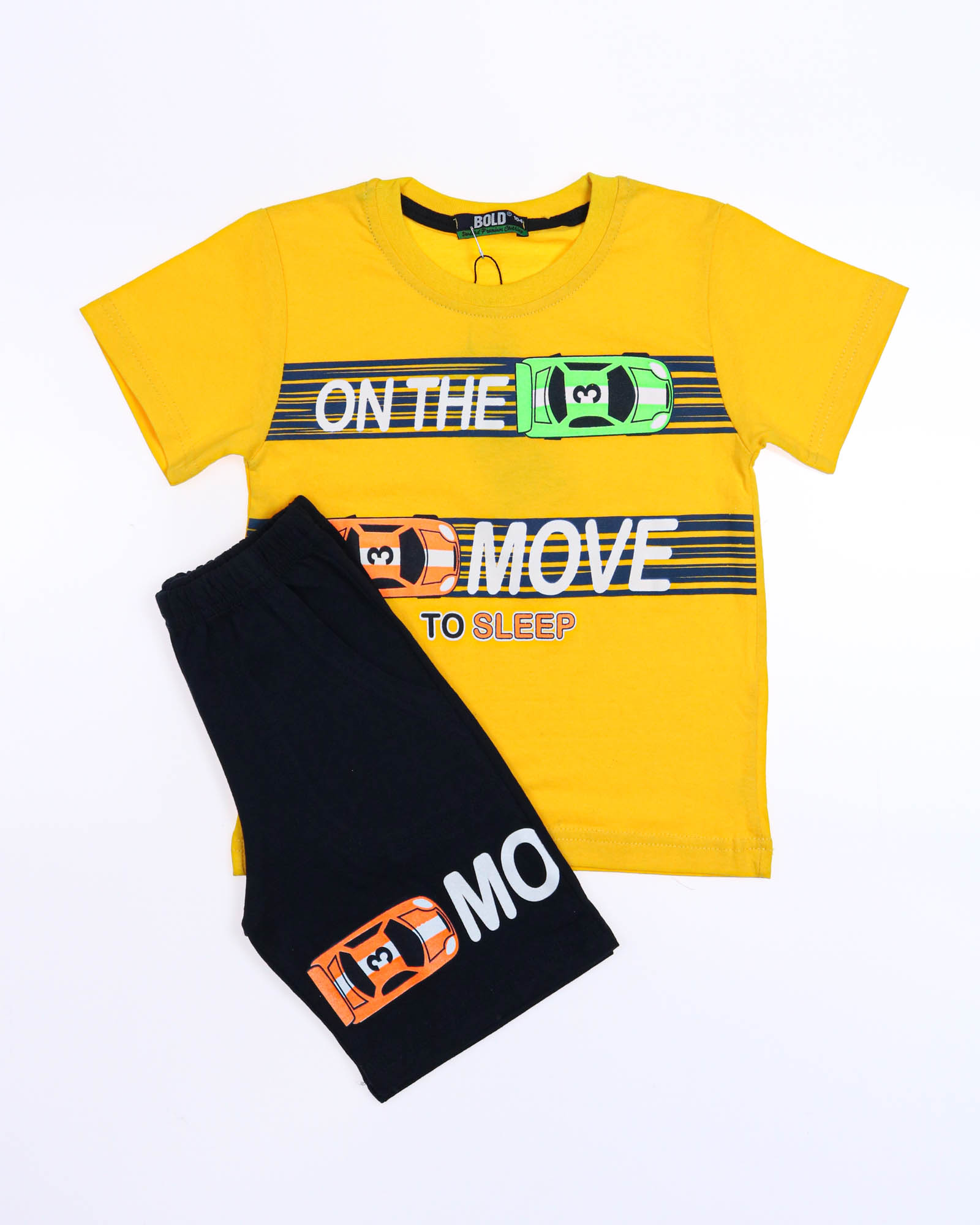 Трикожный костюм BOLD оптом из 100% хлопка с оригинальным, ярким принтом. Шорты трикотажные с карманами.
