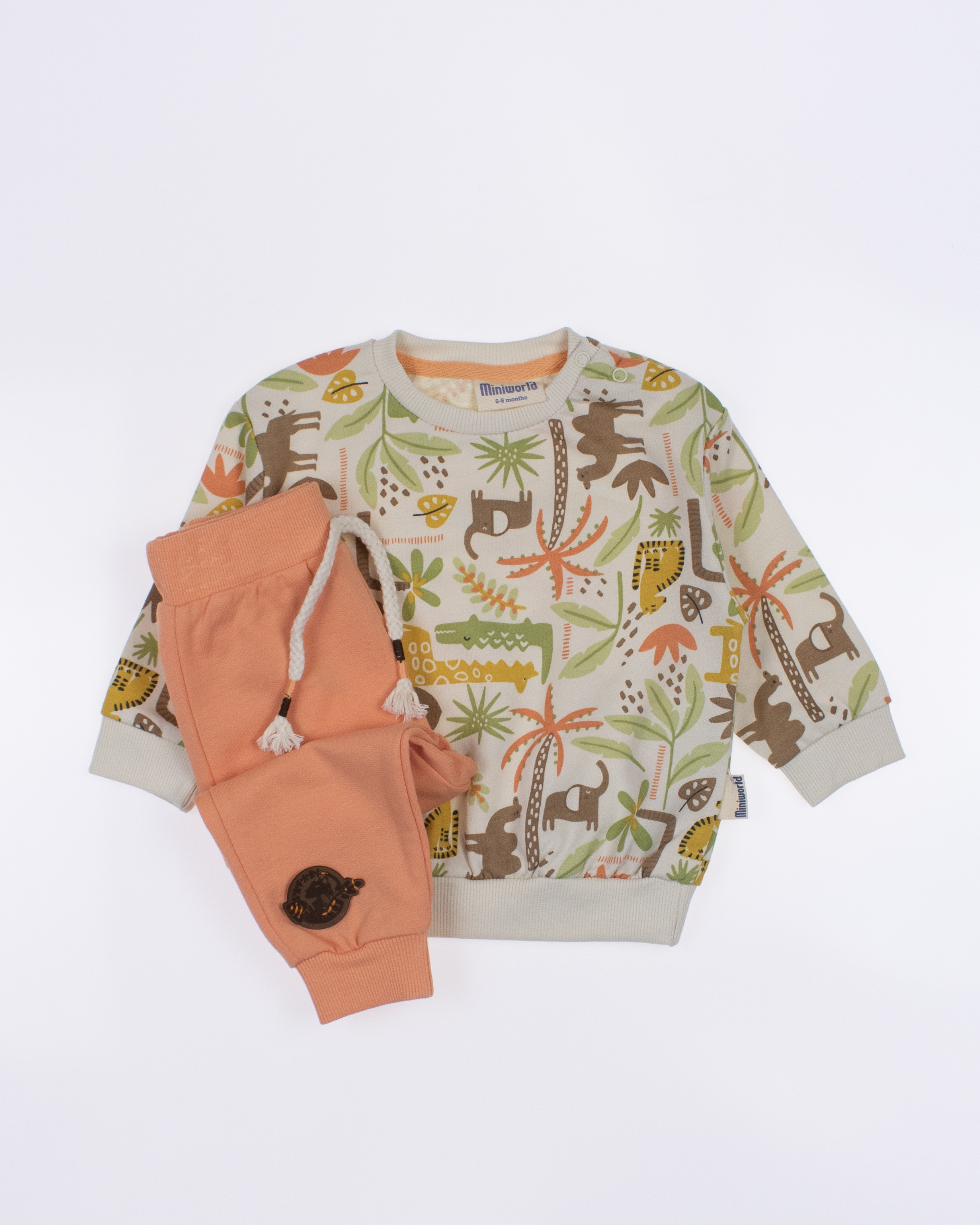 Мы предлагаем оптовые продажи детской одежды производства Турция. Хлопковый костюм MINIWORLD выполнен из 100% хлопка, что гарантирует комфорт и безопасность для самых маленьких детей. Свитшот имеет удобную застежку-кнопки на плече, что облегчит процесс надевания и снятия одежды. Штанишки с мягкими манжетами на эластичном поясе идеально подходят для ношения с подгузником, обеспечивая свободу движений и комфорт. Детский милый принт на костюме поможет развить фантазию и воображение ребенка, делая его образ ярким и запоминающимся. Костюм MINIWORLD - отличный выбор для маленьких модников и их заботливых родителей. Не упустите возможность приобрести этот уникальный товар оптом по выгодной цене!