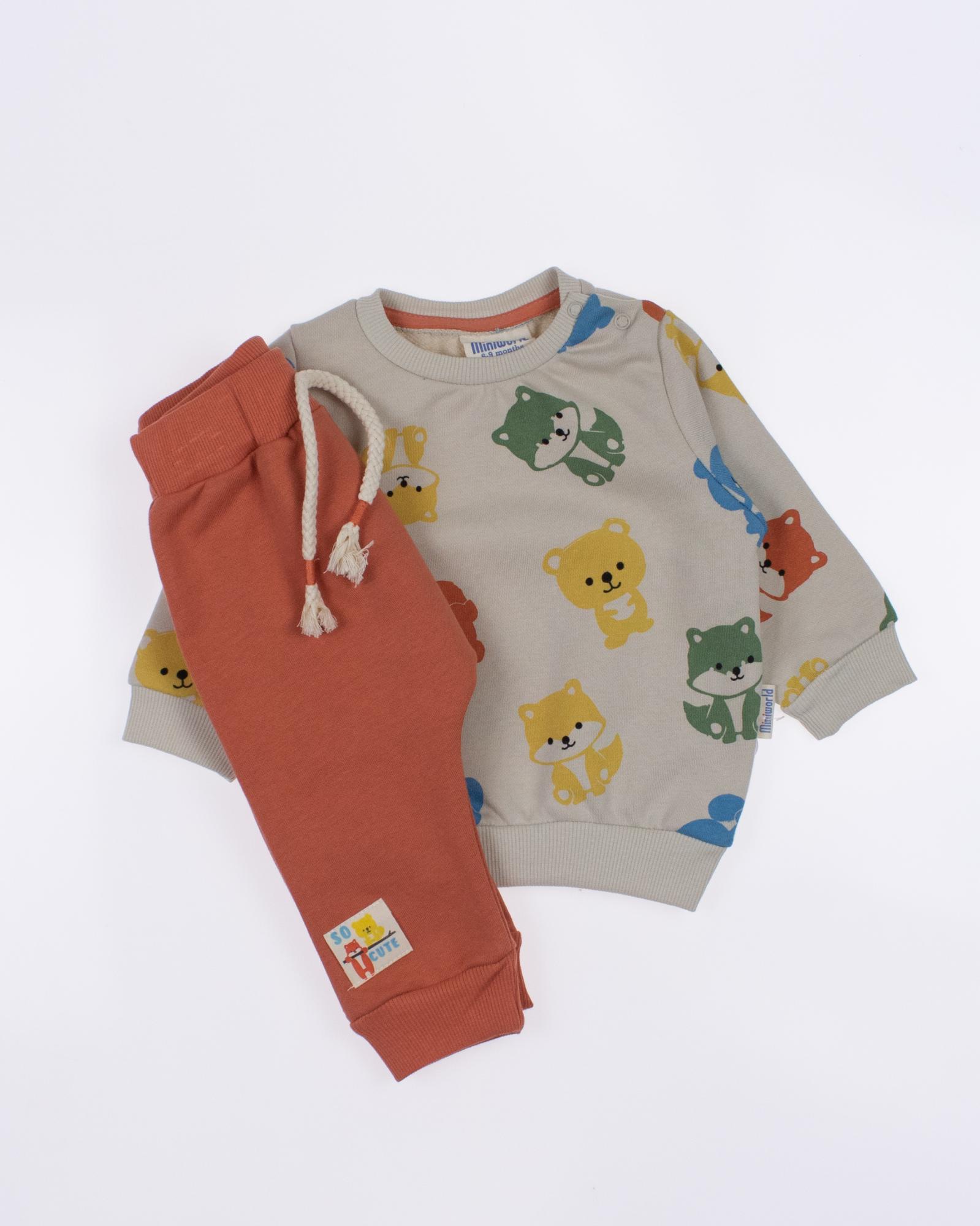 Мы предлагаем оптовые продажи детской одежды производства Турция. Хлопковый костюм MINIWORLD выполнен из футер (петля), что гарантирует комфорт и безопасность для самых маленьких детей. Свитшот имеет удобную застежку-кнопки на плече, что облегчит процесс надевания и снятия одежды. Штанишки с мягкими манжетами на эластичном поясе идеально подходят для ношения с подгузником, обеспечивая свободу движений и комфорт. Детский милый принт на костюме поможет развить фантазию и воображение ребенка, делая его образ ярким и запоминающимся. Костюм MINIWORLD - отличный выбор для маленьких модников и их заботливых родителей. Не упустите возможность приобрести этот уникальный товар оптом по выгодной цене!