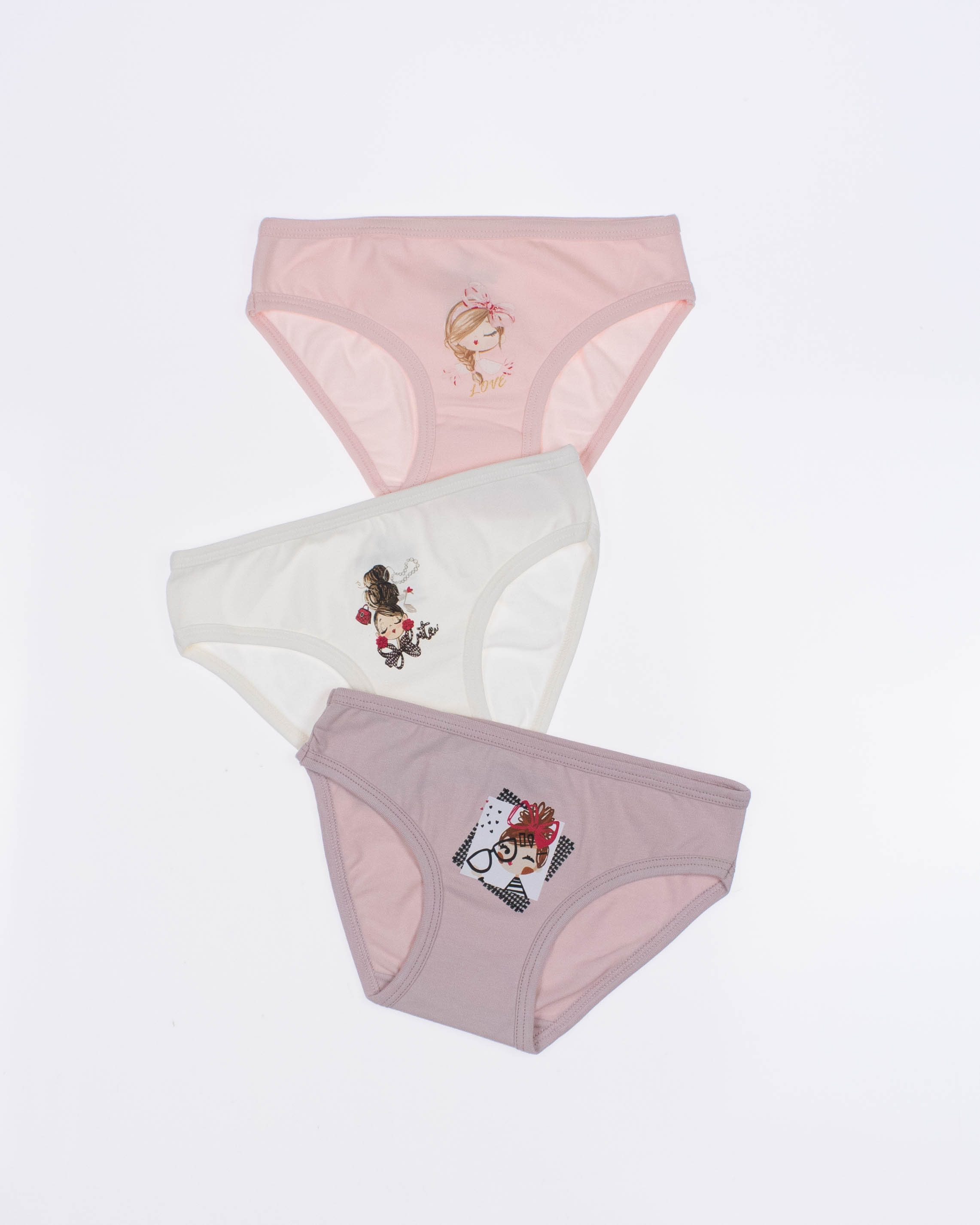 Tрусики BAYKAR для девочки оптом в нежной цветовой гамме. Милый приинт, резинки не впиваются в нежную кожу. Эластичное полотно прилегает к бедрам, натуральный хлопок обладает дышащими свойствами. Трусики представлены в трех пастельных оттенках.