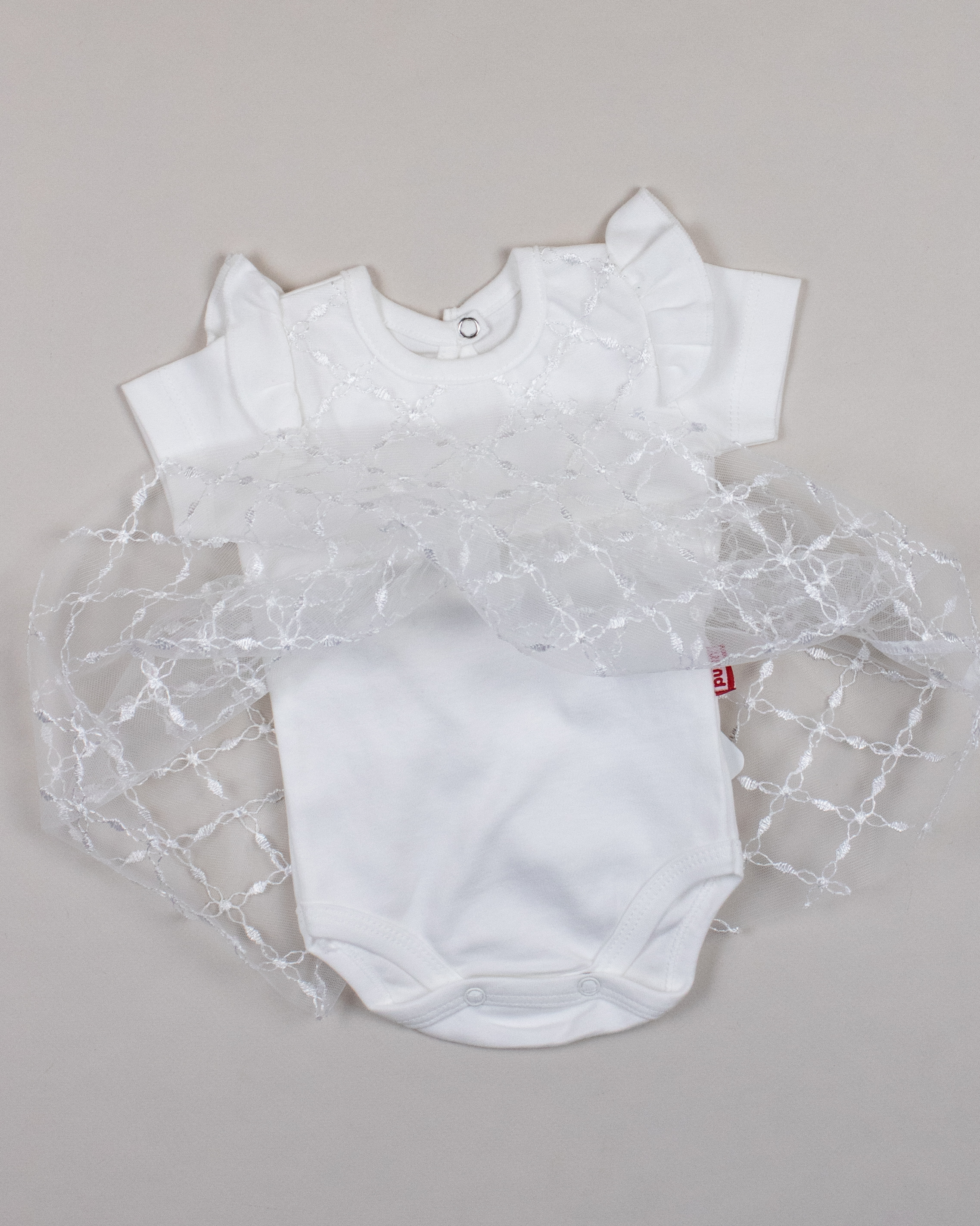 Платье- боди PUAN с коротким рукавом для малышки очень комфортно в использовании, не стесняет движений. Изготовлено из 100% хлопка. Застежка на спинке и снизу позволит в считанные секунды переодеть ребенка. Юбка выполнена из мягкого кружева.